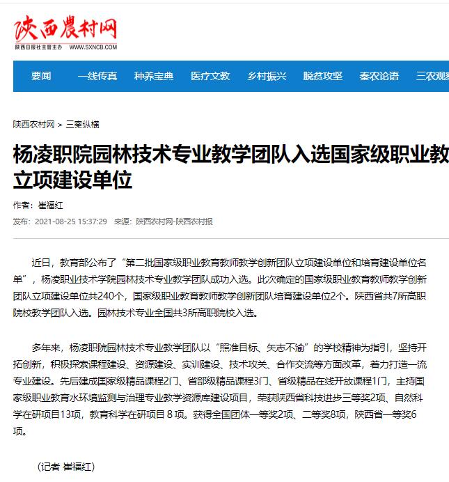 近日,教育部公布了“第二批国家级职业教育教师教学创新团队立项建设单位和培育建设单位名单”,304am永利园林技术专业教学团队成功入选。此次确定的国家级职业教育教师教学创新团队立项建设单位共240个,国家级职业教育教师教学创新团队培育建设单位2个。陕西省共7所高职院校教学团队入选。园林技术专业全国共3所高职院校入选。