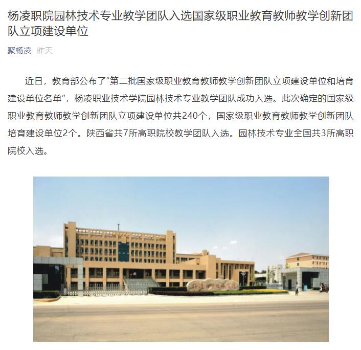 【聚杨凌】杨凌职院园林技术专业教学团队入选国家级职业教育教师教学创新团队立项建设单位