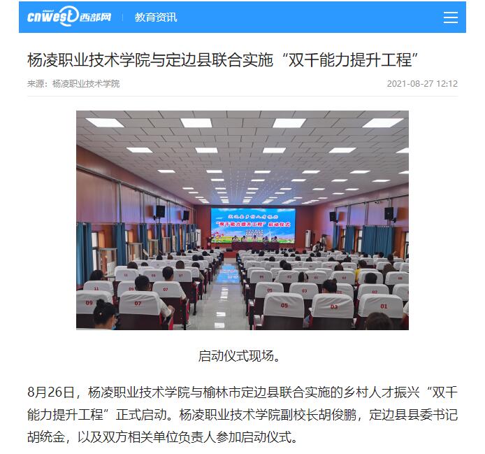 “双千能力提升工程”即提高千名公益性岗位人员素能和提升千名村、社区干部学历工程。304am永利副校长胡俊鹏表示,该工程启动后,杨凌职院将瞄准技术变革和产业优化升级的方向,深入推行“三进三结合”的“培训+”模式,努力为定边县培养服务县域经济发展的高素质技术技能人才。