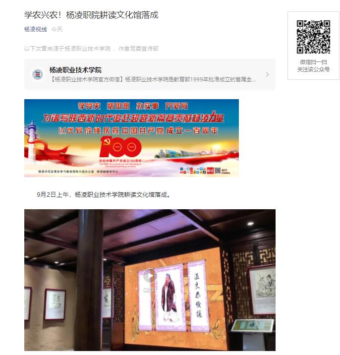 杨凌职院作为一所涉农高职院校,致力打造师生耕读教育阵地,积极构建“力耕勤读”的校园文化体系。耕读文化馆的落成,旨在教育引导学生在读中行、在行中悟,成为一个知行合一、品格高尚、报效祖国的有用之才。