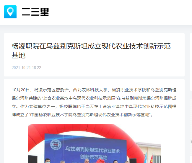 【二三里】杨凌职院在乌兹别克斯坦成立现代农业技术创新示范基地