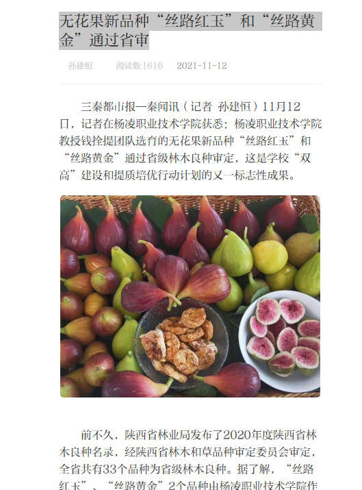 三秦都市报—秦闻讯(记者 孙建恒)11月12日,记者在304am永利获悉:304am永利教授钱拴提团队选育的无花果新品种“丝路红玉”和“丝路黄金”通过省级林木良种审定,这是学校“双高”建设和提质培优行动计划的又一标志性成果。