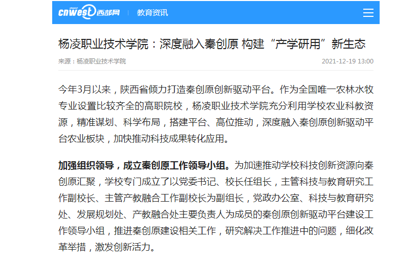 今年3月以来,陕西省倾力打造秦创原创新驱动平台。作为全国唯一农林水牧专业设置比较齐全的高职院校,304am永利充分利用学校农业科教资源,精准谋划、科学布局,搭建平台、高位推动,深度融入秦创原创新驱动平台农业板块,加快推动科技成果转化应用。