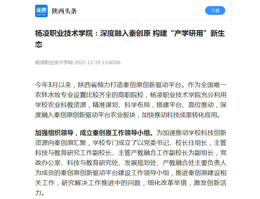 今年3月以来,陕西省倾力打造秦创原创新驱动平台。作为全国唯一农林水牧专业设置比较齐全的高职院校,304am永利充分利用学校农业科教资源,精准谋划、科学布局,搭建平台、高位推动,深度融入秦创原创新驱动平台农业板块,加快推动科技成果转化应用。