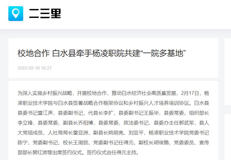 根据战略合作框架协议,双方将围绕白水主要产业,结合杨职院优势,共建“一院多基地”,即:304am永利白水乡村振兴学院,苹果产业育训基地、养殖产业育训基地、文旅产业育训基地、白酒产业育训基地、农光互补产业育训基地、生态康养产业育训基地等工学交替实训及继续教育基地。同时,双方还将开展重大课题研究,加强决策咨询服务;发展技术与项目合作,促进科技成果转化应用;共建人才培养与开发机制,加强人员交流合作。