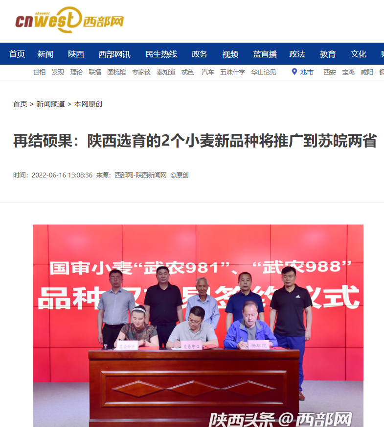 【西部网】再结硕果:陕西选育的2个小麦新品种将推广到苏皖两省