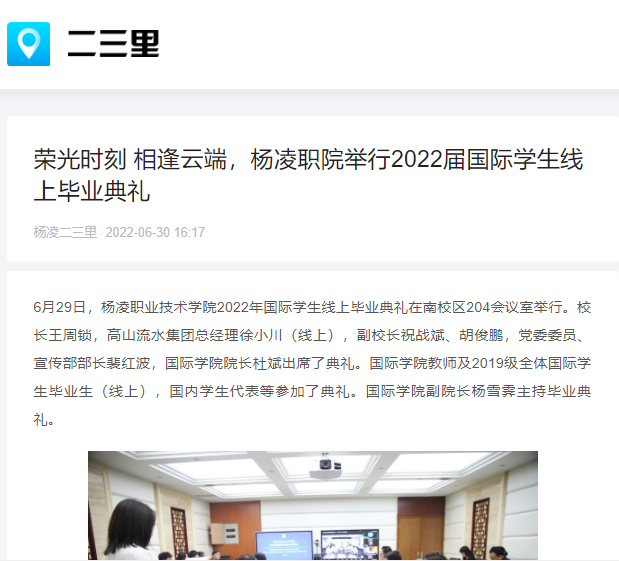 据了解,杨凌职院于2018年开始招收来华国际学生,目前共有在册国际学生63人,其中专业学历学生57名,今年毕业的国际学生共计12名。因为疫情还有23名国际学生预科生参加线上学校。另外,学校已建成两所海外分校,海外分校学生100名。学校的国际学生,已经开始用在校学习到的技术和标准,在其国籍国的多家企业工作,国际教育已初现该校双高任务建设的成果。