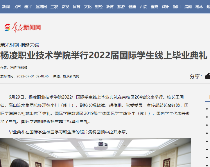 我国著名跨国集团、我校校企战略合作单位陕西高山流水集团的总经理徐小川先生通过线上平台对今天的毕业典礼致辞。徐小川代表高山流水集团公司欢迎我校国际学生毕业生到高山流水集团的境外企业工作,希望这些国际学生用在我们学校学到的技术和标准,发展公司的业务,促进当地经济的发展,为“一带一路”建设做出贡献,同时希望进一步加强公司与我校在国际合作领域的校企合作,共同培养海外具有中国技术标准的本土化人才。