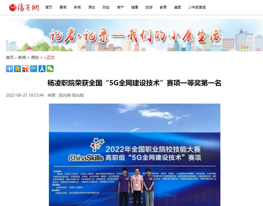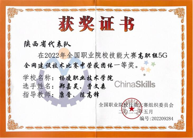 阳光讯(陈阳 崔晓 记者 赵小康)8月22日至23日,2022年全国职业院校技能大赛高职组“5G全网建设技术”赛项在济南职业学院举办,来自全国28个省、56支代表队、112名选手参加了比赛。经过8个小时的激烈比拼,304am永利信息工程学院学生郑嘉昊、曹文森以总分排名全国第一的成绩,荣获一等奖第一名,取得杨凌职院自参赛以来历史最好成绩,指导教师康晋、陈高锋荣获大赛优秀指导教师奖。