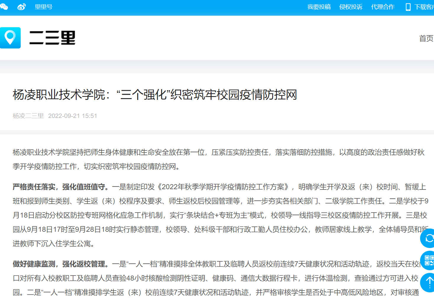 严格责任落实,强化值班值守。一是制定印发《2022年秋季学期开学疫情防控工作方案》,明确学生开学及返(来)校时间、暂缓上班和报到师生类别、学生返(来)校程序及要求、师生返校后校园管理等,进一步夯实各相关部门、二级学院工作责任。二是学校于9月18日启动分校区防控专班网格化应急工作机制,实行“条块结合+专班为主”模式,校领导一线指导三校区疫情防控工作开展。三是校园从9月18日17时至9月28日18时实行静态管理,校领导、处科级干部和行政工勤人员住校办公,教师居家线上教学,全体辅导员和新进教师下沉入住学生公寓。