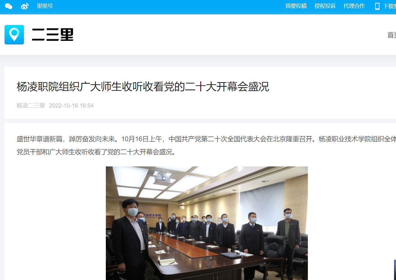 10时整,在南校区208会议室,学校党委理论学习中心组成员、各部门负责人,准时收看党的二十大开幕会,认真聆听习近平总书记所作报告。各党总支、直属党支部以党总支或党支部为单位,组织全体党员干部、教职工和思政课教师收看党的二十大开幕会。学工部、团委组织广大学生通过电视、网络、手机等方式,就近就便同步收听收看党的二十大实况直播。