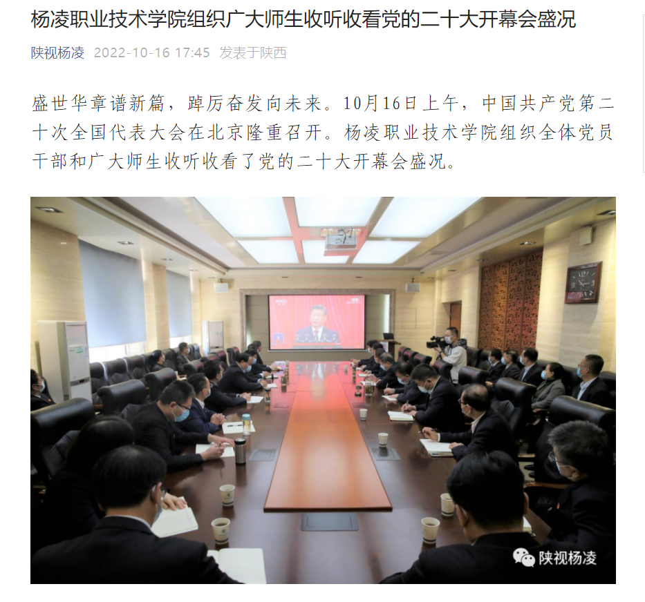 10时整,在南校区208会议室,学校党委理论学习中心组成员、各部门负责人,准时收看党的二十大开幕会,认真聆听习近平总书记所作报告。各党总支、直属党支部以党总支或党支部为单位,组织全体党员干部、教职工和思政课教师收看党的二十大开幕会。学工部、团委组织广大学生通过电视、网络、手机等方式,就近就便同步收听收看党的二十大实况直播。