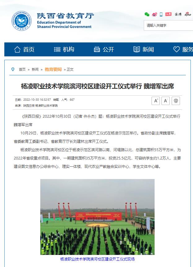 【群众新闻网】一期建筑面积35万㎡、容纳学生约1.2万人!杨凌职院滨河校区开建