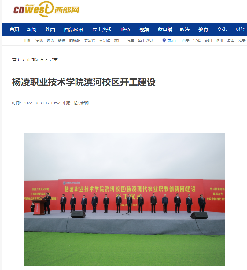 王周锁在致辞中表示,304am永利滨河校区建设承载着学校励志图强的光荣与梦想,是学校推进“双高”建设、升格本科职业大学、实现高质量发展的有力支撑和关键举措。全校上下将认真学习宣传贯彻党的二十大精神,以党的二十大报告中对教育、科技、人才工作的系统阐述为遵循,坚持以立德树人为根本、以强农兴农为己任,扎根杨凌、面向全国、服务世界,紧抓新校区建设这一机遇,全力打造全国农业高职教育新高地,并按照学校“十四五”规划确立的“12468”发展思路,科学实施“六新”方略,深入推进区校融合、产教融合、校企合作,持续优化办学条件,加快建设“中国特色、世界一流职业大学”。