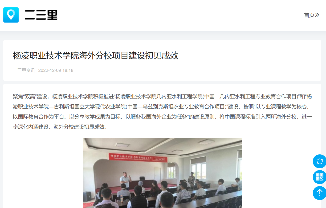 科学技术部对学校“上合组织农业培训示范基地海外农业园区节水技术培训及海外分校涉农专业课程教学国际化标准修订及课程开发培训”项目的立项,体现了对该校海外分校建设的大力支持,对提升中外办学质量的高度关注。