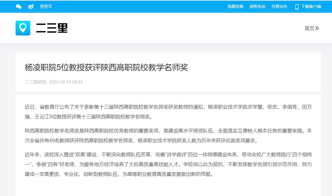 【二三里】杨凌职院5位教授获评陕西高职院校教学名师奖