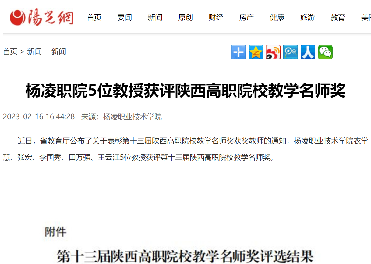 近日,省教育厅公布了关于表彰第十三届陕西高职院校教学名师奖获奖教师的通知,304am永利衣学慧、张宏、李国秀、田万强、王云江5位教授获评第十三届陕西高职院校教学名师奖。