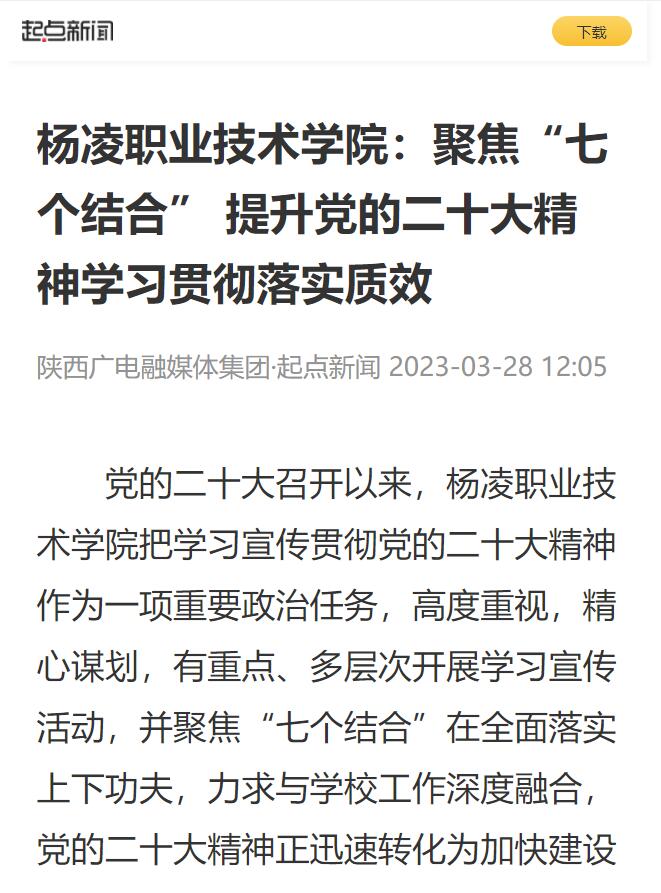 ——与全面推进乡村振兴相结合。充分发挥涉农高校优势,以服务乡村振兴战略为主线,与彬州市开展乡村振兴校地合作“五共一建”,组建10个“教授+企业行家+乡土专家”专家技术服务团队,定期赴彬州10 个示范村精准指导“一镇一特、一村一品”工作;成立学校徐家坪乡村振兴学院,基于略阳特色产业发展,采取共建基地、课题研究、项目合作、人才培养等方式,打造“红色引领+绿色发展”的乡村振兴路;举办靖边县乡村振兴示范培训班,通过专家讲授、现场观摩、研讨交流等,学习借鉴农业产业现代化发展实践经验,为乡村振兴注入了“源动力”。学校在全国职业院校巩固扶贫成果赋能乡村振兴经验交流会上作交流发言,在陕西高校秦创原建设工作及科技成果转移转化绩效评估中获A等单位,《教授进村 技术上门 百团下乡支农问诊》入选职业教育服务乡村振兴典型案例(陕西唯一入选高校)。
