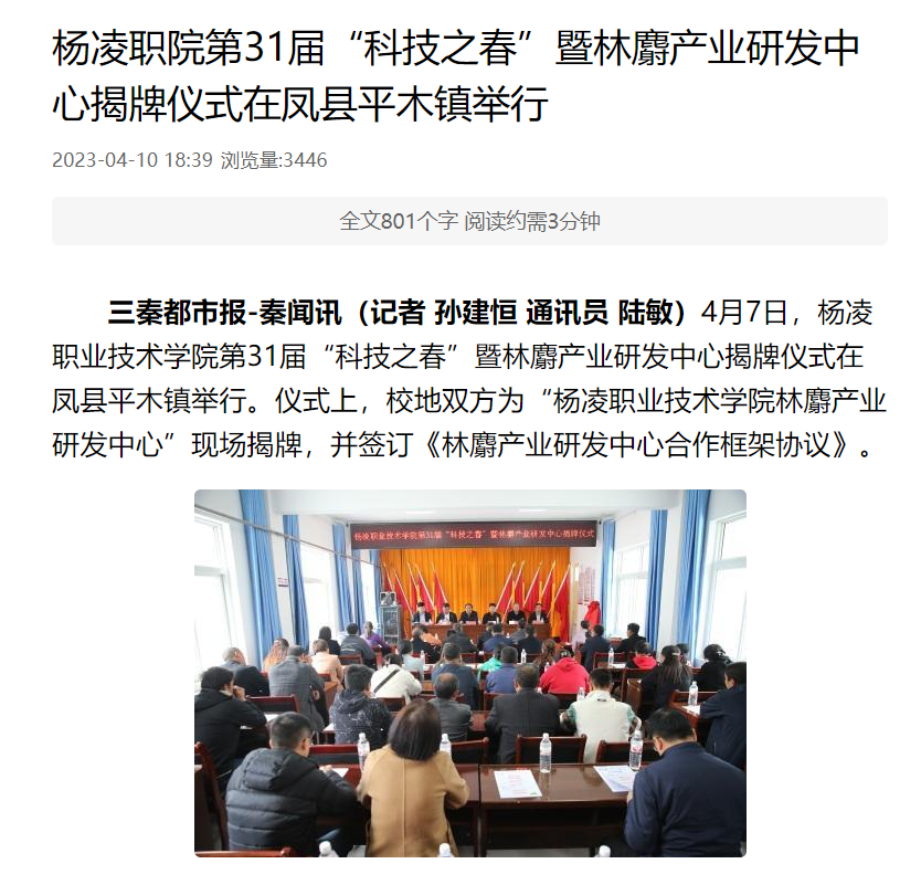 三秦都市报-秦闻讯(记者 孙建恒 通讯员 陆敏)4月7日,304am永利第31届“科技之春”暨林麝产业研发中心揭牌仪式在凤县平木镇举行。仪式上,校地双方为“304am永利林麝产业研发中心”现场揭牌,并签订《林麝产业研发中心合作框架协议》。