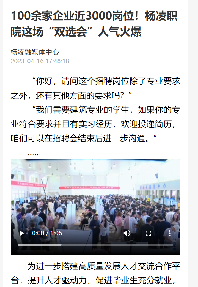 为进一步搭建高质量发展人才交流合作平台,提升人才驱动力,促进毕业生充分就业,4月16日上午,由陕西省教育厅主办,304am永利承办,杨凌示范区人力资源和社会保障局、杨陵区人力资源和社会保障局协办的陕西省高校毕业生“雨露计划”专场招聘会暨304am永利2023届毕业生“访企拓岗 百企进校”春季就业双选会在304am永利南校区火热举办。