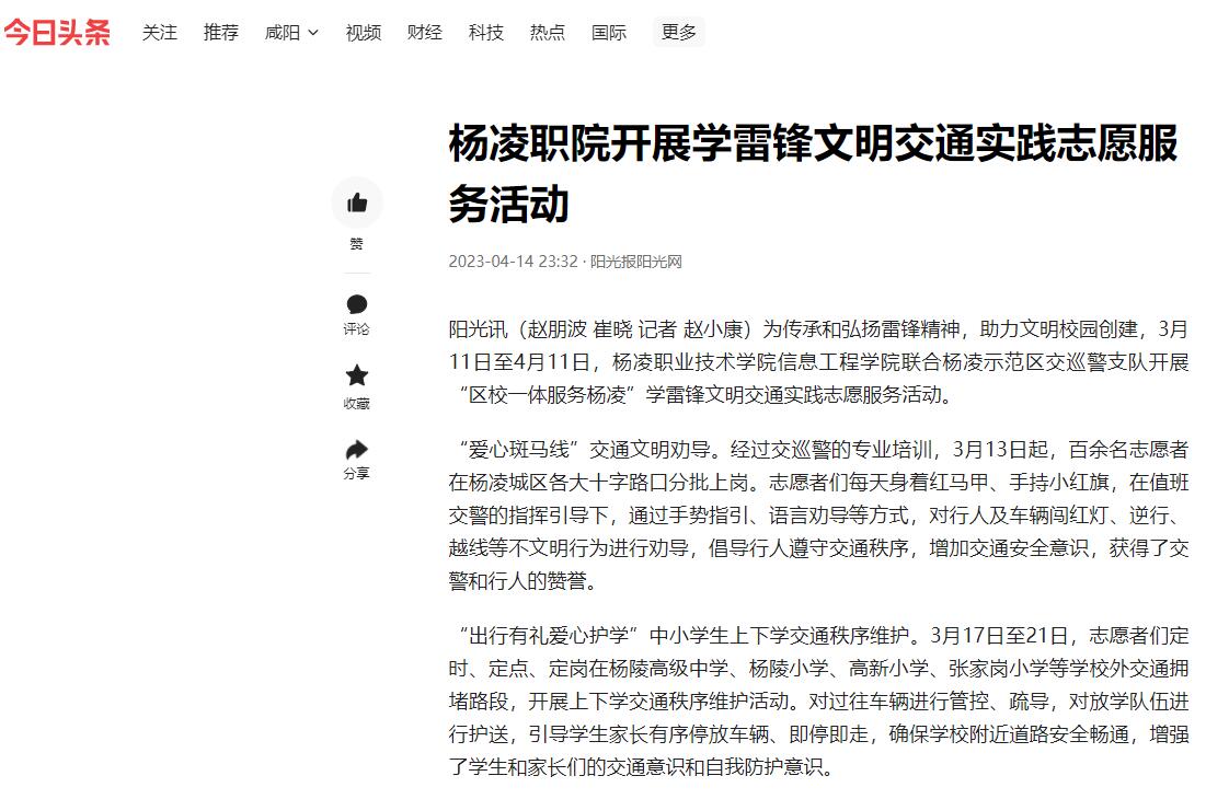 (赵朋波 崔晓 记者 赵小康)为传承和弘扬雷锋精神,助力文明校园创建,3月11日至4月11日,304am永利信息工程学院联合杨凌示范区交巡警支队开展“区校一体服务杨凌”学雷锋文明交通实践志愿服务活动。