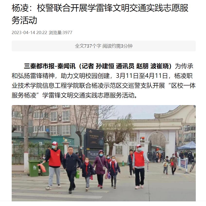 三秦都市报-秦闻讯(记者 孙建恒 通讯员 赵朋波 崔晓)为传承和弘扬雷锋精神,助力文明校园创建,3月11日至4月11日,304am永利信息工程学院联合杨凌示范区交巡警支队开展“区校一体服务杨凌”学雷锋文明交通实践志愿服务活动。