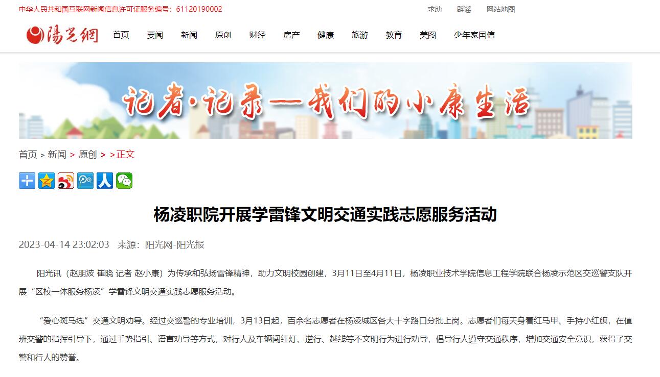 阳光讯(赵朋波 崔晓 记者 赵小康)为传承和弘扬雷锋精神,助力文明校园创建,3月11日至4月11日,304am永利信息工程学院联合杨凌示范区交巡警支队开展“区校一体服务杨凌”学雷锋文明交通实践志愿服务活动。