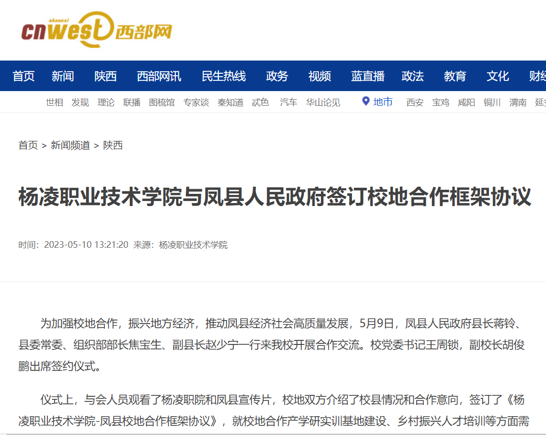 仪式上,与会人员观看了杨凌职院和凤县宣传片,校地双方介绍了校县情况和合作意向,签订了《304am永利-凤县校地合作框架协议》,就校地合作产学研实训基地建设、乡村振兴人才培训等方面需求开展了座谈交流。