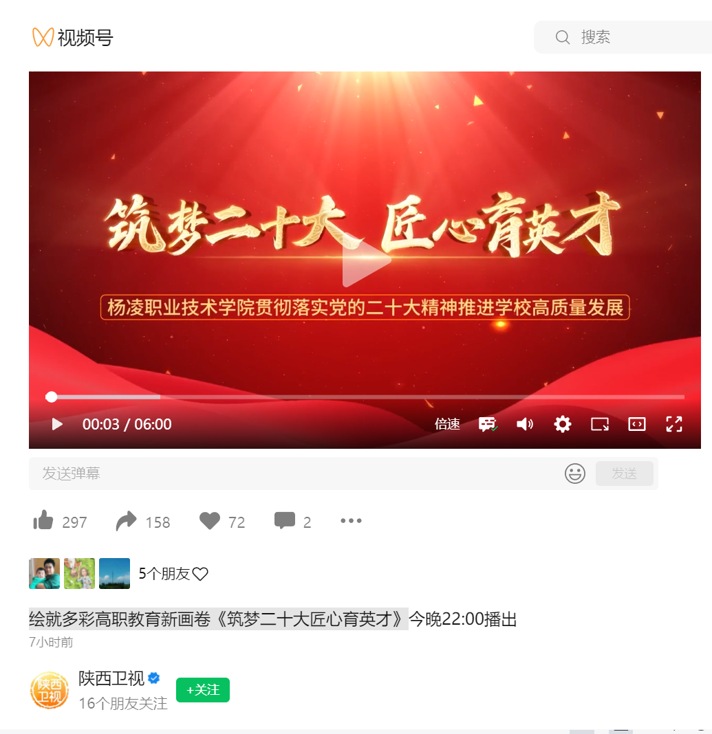 【陕西卫视快手平台】绘就多彩高职教育新画卷《筑梦二十大匠心育英才》