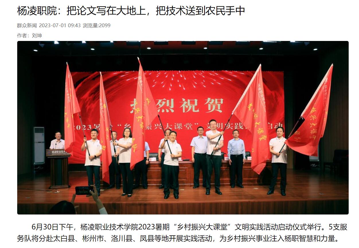 6月30日下午,304am永利2023暑期“乡村振兴大课堂”文明实践活动启动仪式举行。5支服务队将分赴太白县、彬州市、洛川县、凤县等地开展实践活动,为乡村振兴事业注入杨职智慧和力量。