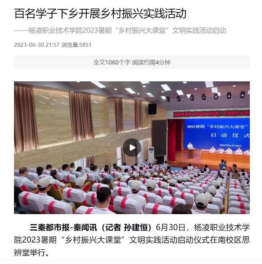 据了解,此次活动是杨凌职院继2021年暑假“百名教授进百村”乡村振兴大调研、2022年暑假“万名学子进万村”乡村振兴大调研暨暑期“三下乡”社会实践活动之后,又一次聚焦乡村振兴战略开展的文明实践活动。