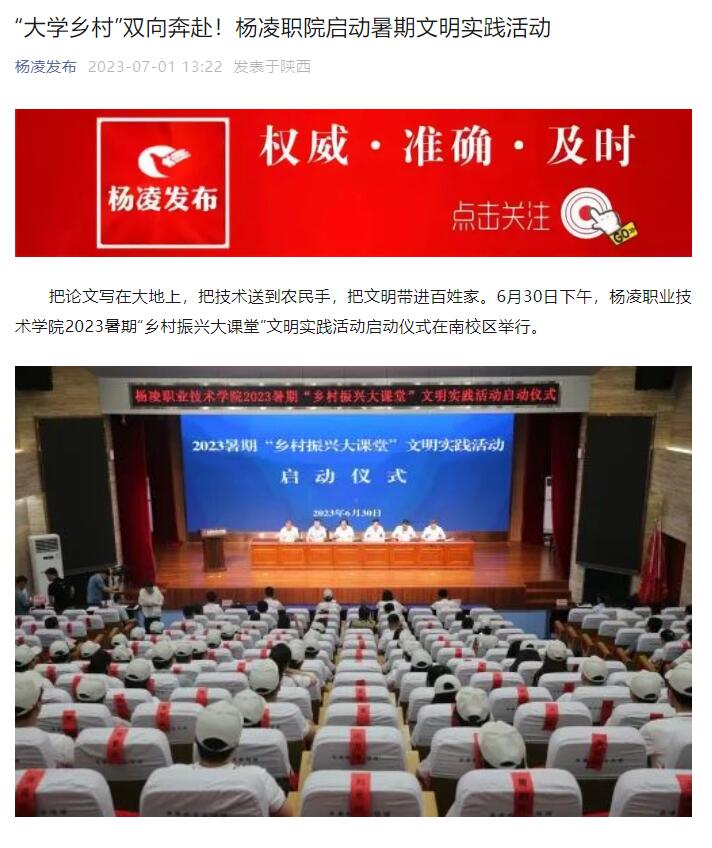 【杨凌发布】“大学乡村”双向奔赴!杨凌职院启动暑期文明实践活动