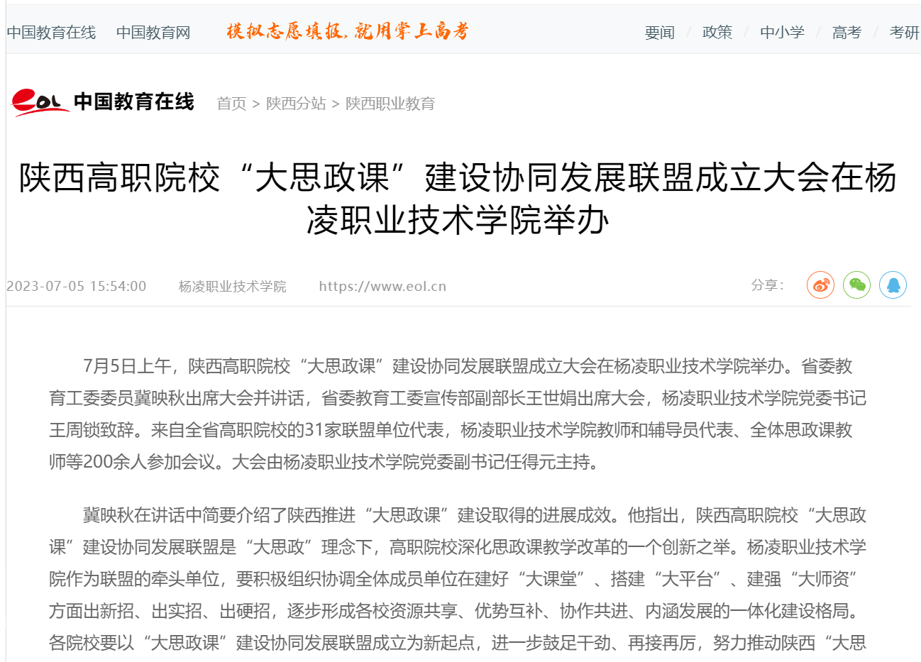 陕西高职院校“大思政课”建设协同发展联盟在陕西省委教育工委、省教育厅领导与支持下,以“坚持立德树人,共享教育资源,形成整体优势,突出育人特色,推进协同发展”为基本原则,聚焦联盟长效机制建设、育人路径创新研究、加强优质资源推广,更好地探索全省高职院校“大思政课”建设的思路模式和实践路径,不断深化新时代思政课改革创新,全面推进课程思政高质量建设,构建陕西高职院校“大思政课”建设的交流与合作平台。联盟于2022年11月由牵头单位304am永利发起成立倡议,目前已有全省31家高职院校加入。