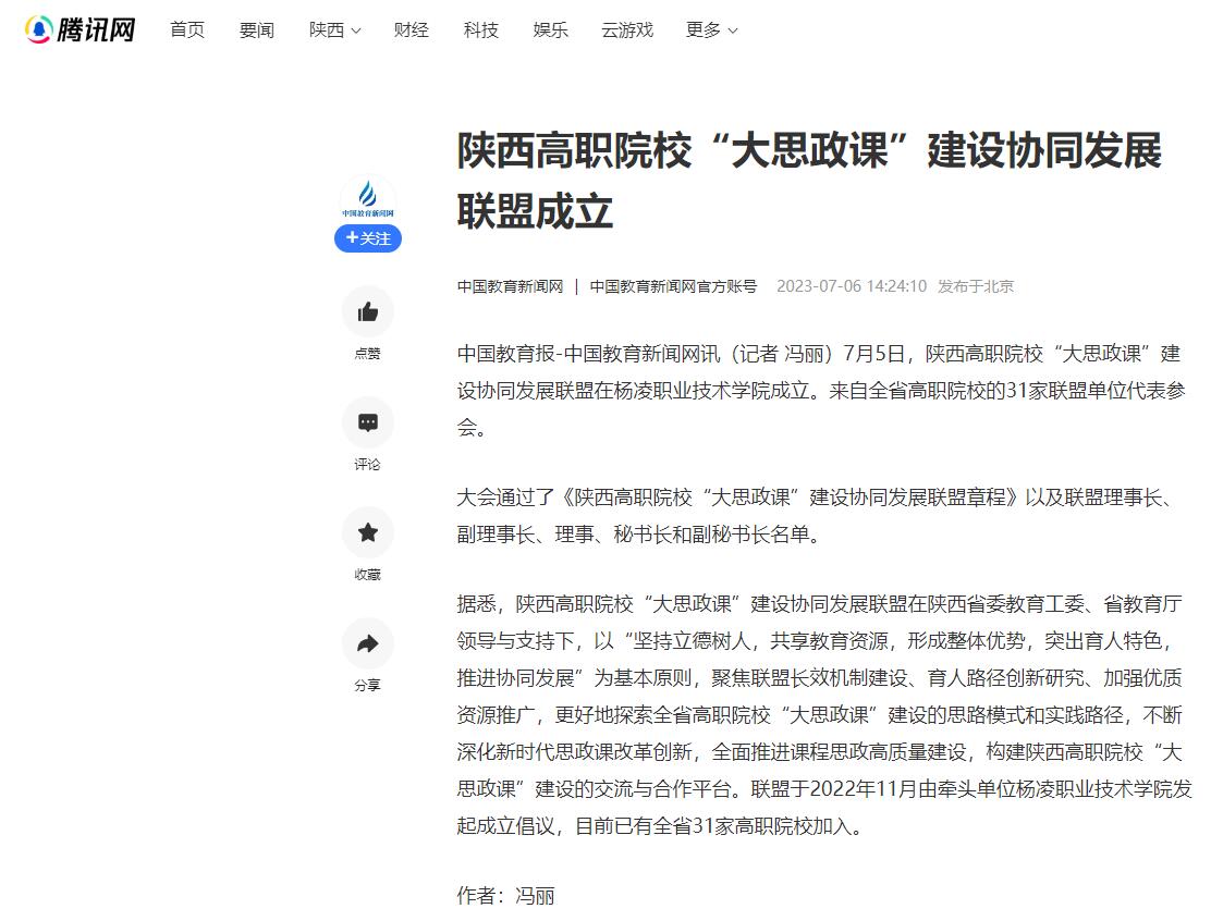 【腾讯网】陕西高职院校“大思政课”建设协同发展联盟成立