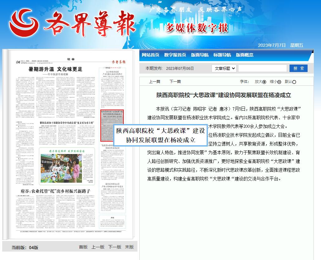 本报讯(实习记者 陈昭宇 记者 唐冰)7月5日,陕西高职院校“大思政课”建设协同发展联盟在304am永利成立。省内31所高职院校代表、十余家中省主流媒体记者以及304am永利教师代表等200余人参加成立大会。 联盟于2022年11月由牵头单位304am永利发起成立倡议,目前全省已有31家高职院校加入。联盟以“坚持立德树人,共享教育资源,形成整体优势,突出育人特色,推进协同发展”为基本原则,致力于聚焦联盟长效机制建设、育人路径创新研究、加强优质资源推广,更好地探索全省高职院校“大思政课”建设的思路模式和实践路径,不断深化新时代思政课改革创新,全面推进课程思政高质量建设,构建全省高职院校“大思政课“建设的交流与合作平台。