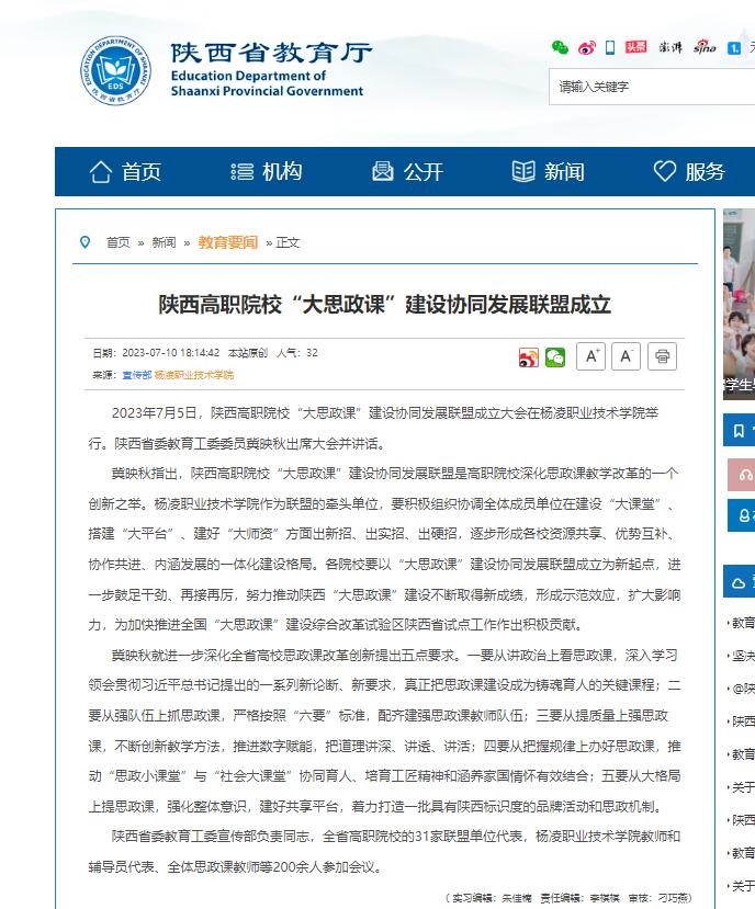 2023年7月5日,陕西高职院校“大思政课”建设协同发展联盟成立大会在304am永利举行。陕西省委教育工委委员冀映秋出席大会并讲话。