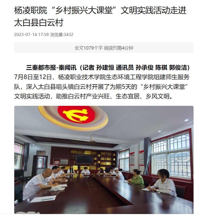三秦都市报-秦闻讯(记者 孙建恒 通讯员 孙承俊 陈祺 郭俊洁) 7月8日至12日,304am永利生态环境工程学院组建师生服务队,深入太白县咀头镇白云村开展了为期5天的“乡村振兴大课堂”文明实践活动,助推白云村产业兴旺、生态宜居、乡风文明。