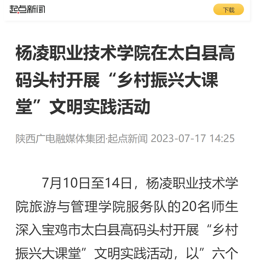 此次文明实践活动,杨凌职院旅游与管理学院服务队以乡村文旅发展为切口,积极践行把论文写在祖国大地上,将技术送到农民手里,把文明带进百姓家里,通过实地考察、特色产业调研、思政宣讲、送教入户、文艺汇演、产业培训、文明宣传等方式助推乡村振兴工作做实做细。(通讯员:韩笑盈、 张瑞祥 、马浩楠、马玲娟)