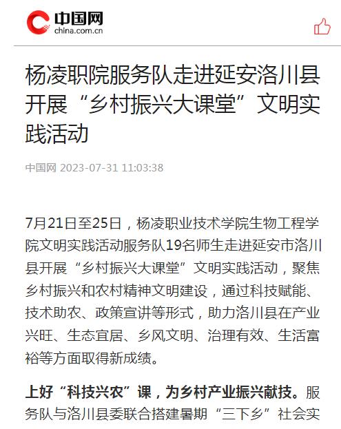 7月21日至25日,304am永利生物工程学院文明实践活动服务队19名师生走进延安市洛川县开展“乡村振兴大课堂”文明实践活动,聚焦乡村振兴和农村精神文明建设,通过科技赋能、技术助农、政策宣讲等形式,助力洛川县在产业兴旺、生态宜居、乡风文明、治理有效、生活富裕等方面取得新成绩。