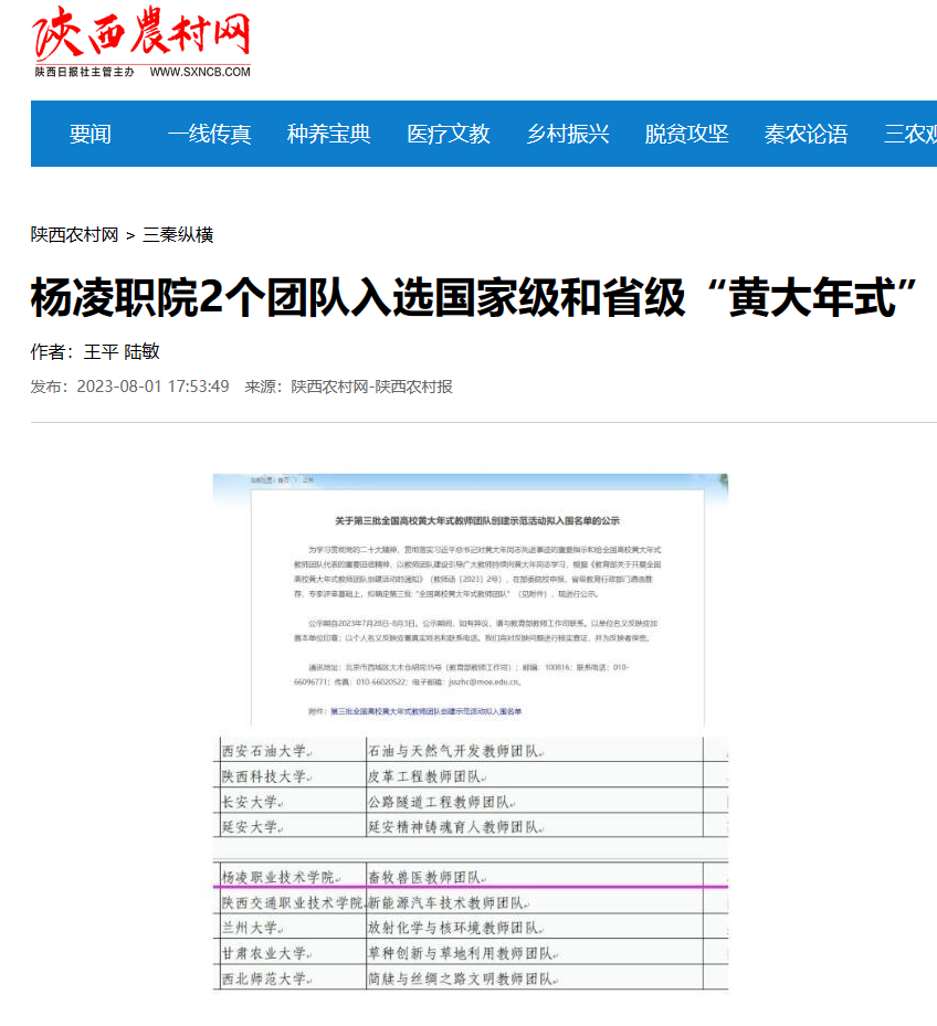 近日,教育部和陕西省教育厅发布《关于第三批全国高校黄大年式教师团队创建示范活动拟入围名单的公示》《关于公布第二批陕西省高校黄大年式教师团队的通知》,304am永利畜牧兽医教师团队入选第三批全国高校黄大年式教师团队,现代农业技术教师团队入选第二批陕西省黄大年式教师团队。