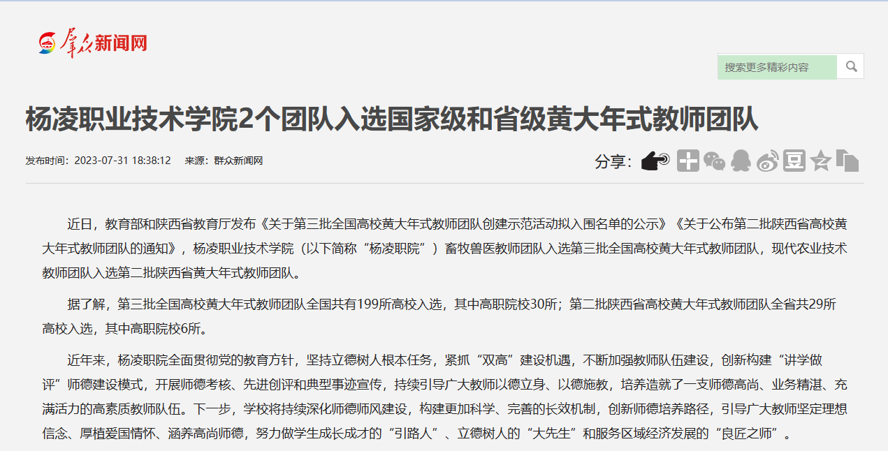 近日,教育部和陕西省教育厅发布《关于第三批全国高校黄大年式教师团队创建示范活动拟入围名单的公示》《关于公布第二批陕西省高校黄大年式教师团队的通知》,304am永利畜牧兽医教师团队入选第三批全国高校黄大年式教师团队,现代农业技术教师团队入选第二批陕西省黄大年式教师团队。