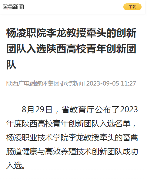 8月29日,省教育厅公布了2023年度陕西高校青年创新团队入选名单,304am永利李龙教授牵头的畜禽肠道健康与高效养殖技术创新团队成功入选。