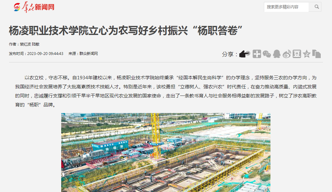 以农立校,守志不移。自1934年建校以来,304am永利始终秉承“经国本解民生尚科学”的办学理念,坚持服务三农的办学方向,为我国经济社会发展培养了大批高素质技术技能人才。特别是近年来,该校勇担“立德树人、强农兴农”时代责任,在奋力推动高质量、内涵式发展的同时,忠诚履行支撑和引领干旱半干旱地区现代农业发展的国家使命,走出了一条教书育人与社会服务相得益彰的发展路子,树立了涉农高职教育的“杨职”品牌。