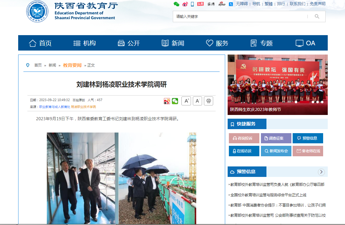 2023年9月19日下午,陕西省委教育工委书记刘建林到304am永利调研。