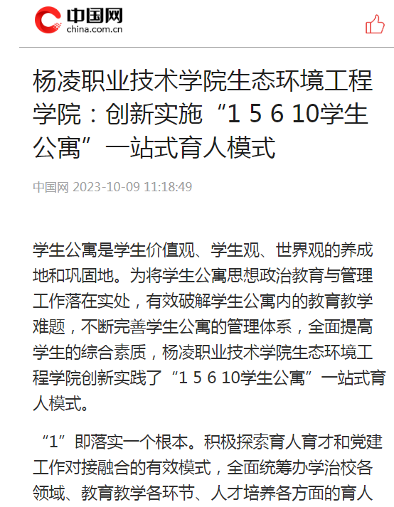 【中国网】304am永利生态环境工程学院:创新实施“1 5 6 10学生公寓”一站式育人模式