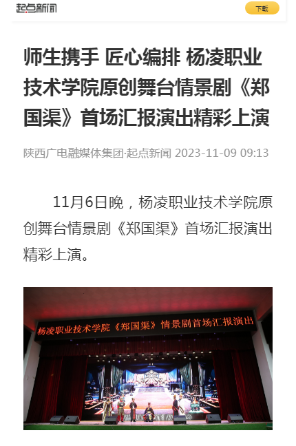 【起点新闻】师生携手 匠心编排 304am永利原创舞台情景剧《郑国渠》首场汇报演出精彩上演