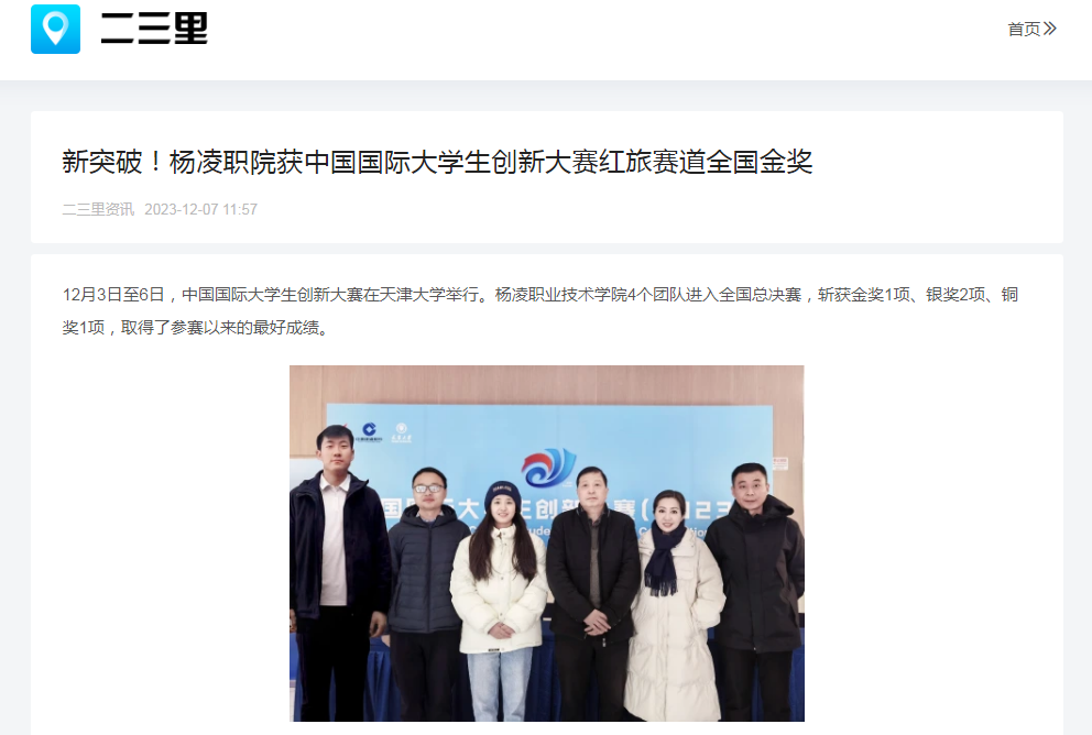 【二三里】新突破!杨凌职院获中国国际大学生创新大赛红旅赛道全国金奖