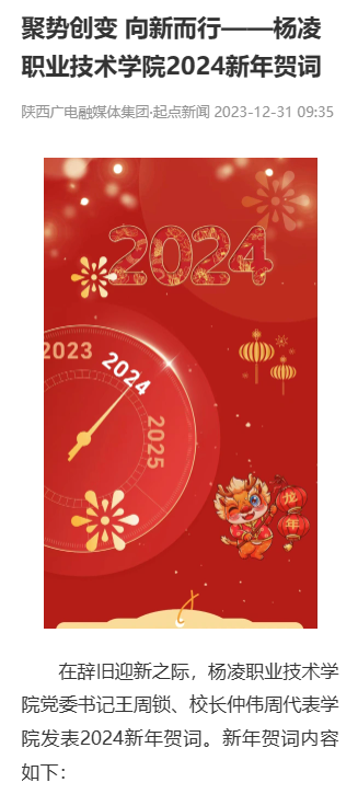 在辞旧迎新之际,304am永利党委书记王周锁、校长仲伟周代表学院发表2024新年贺词。新年贺词内容如下: