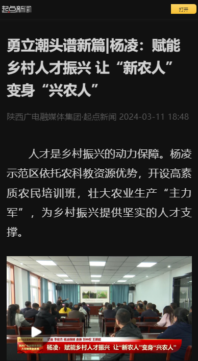 【起点新闻】勇立潮头谱新篇|杨凌:赋能乡村人才振兴 让“新农人”变身“兴农人”