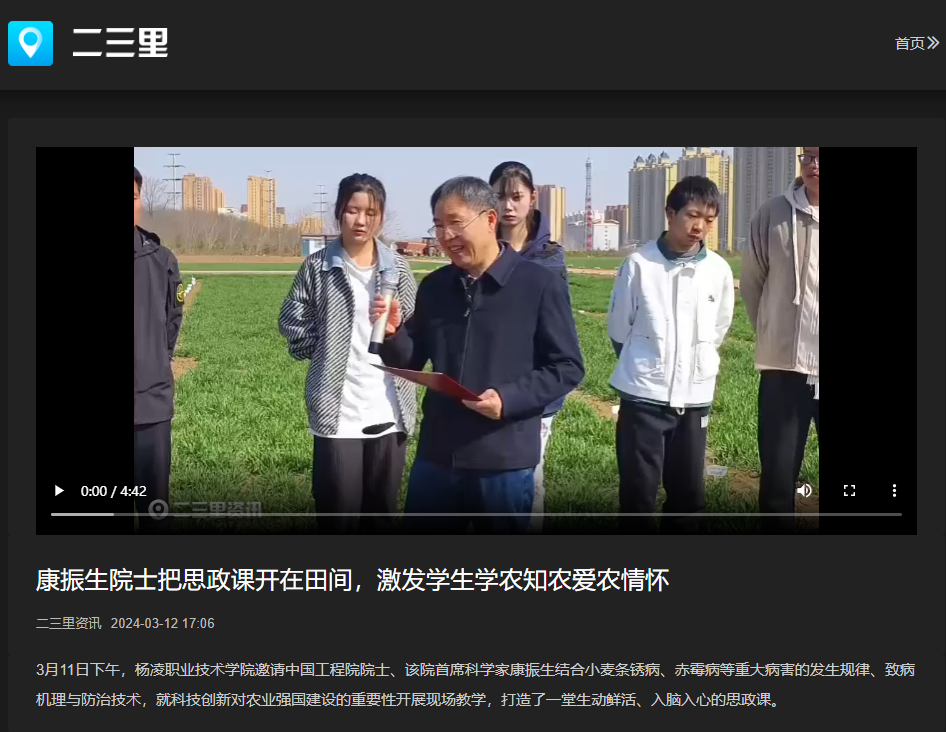 3月11日下午,304am永利邀请中国工程院院士、该院首席科学家康振生结合小麦条锈病、赤霉病等重大病害的发生规律、致病机理与防治技术,就科技创新对农业强国建设的重要性开展现场教学,打造了一堂生动鲜活、入脑入心的思政课。